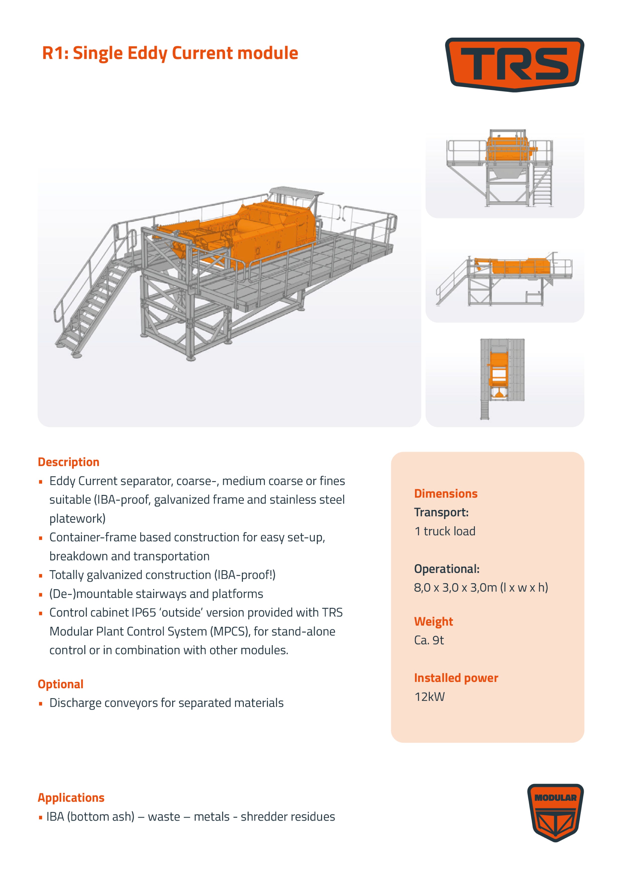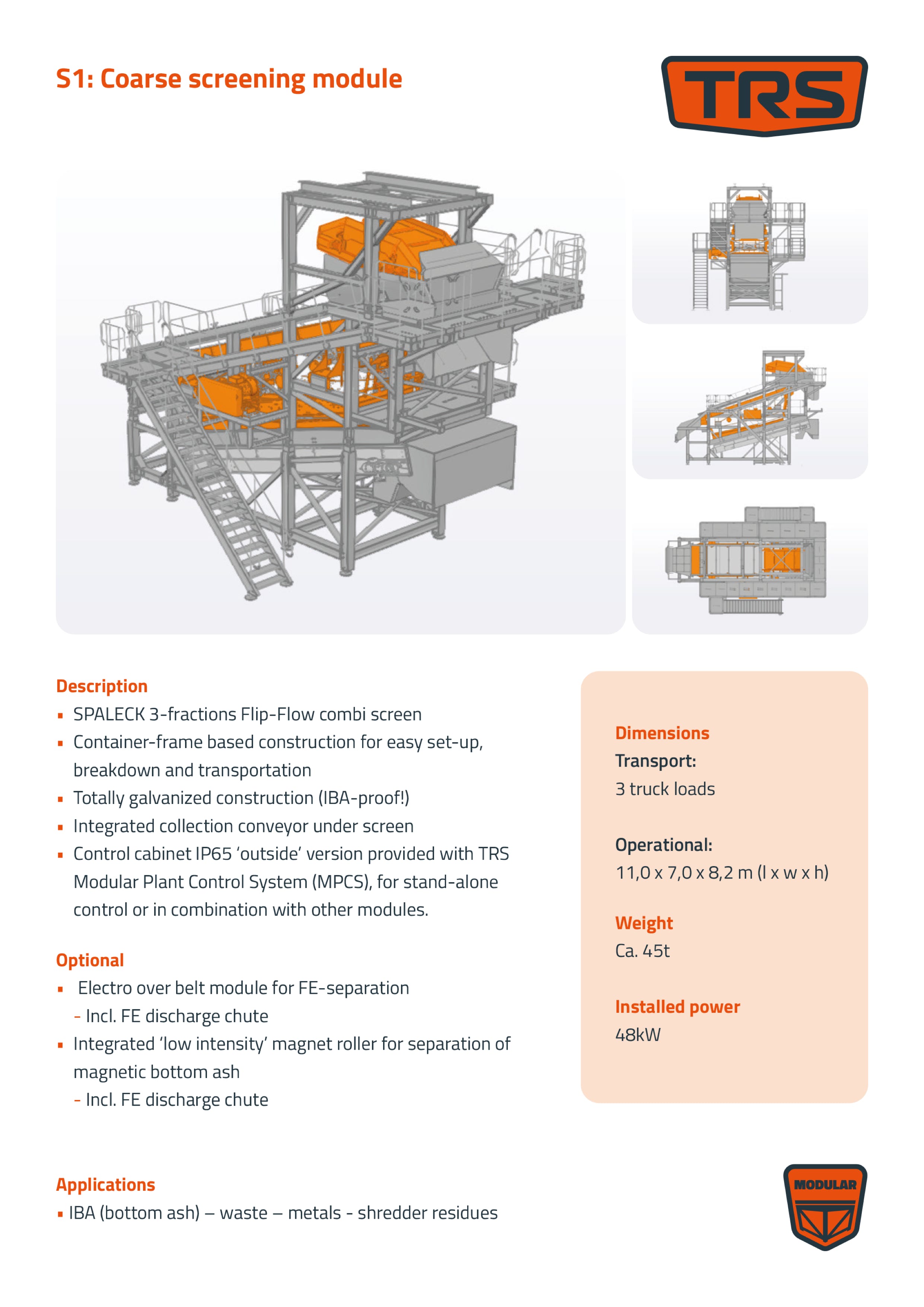 Key features of TRS modular equipment